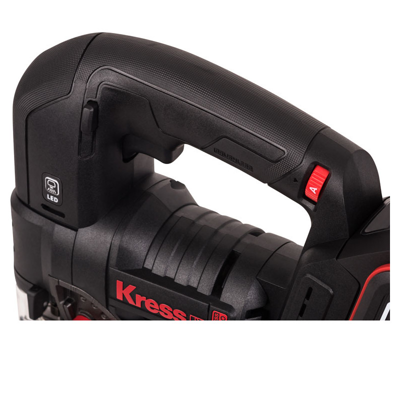Аккумуляторный лобзик KRESS KUE26 с мощным бесщёточным двигателем применяется для прямого и фигурного распила материалов. Подошва литая. Инструмент работает от универсальных литий-ионных аккумуляторных батарей KRESS KROSS PACK 20V. Имеет функцию быстрой замены пилки, подключение к пылесосу и подсветку рабочей зоны. Оснащен 4-ступенчатым маятниковым ходом и блокировкой выключателя. Система регулировки скорости позволяет подобрать оптимальный для работы с каждым конкретным типом материала режим. Благодаря механизму наклона платформы можно выполнять распил под углом от 0 до 45 градусов. Удобная рукоять закрытого типа служит для комфортного удержания и управления инструментом. Поставляется в кейсе.