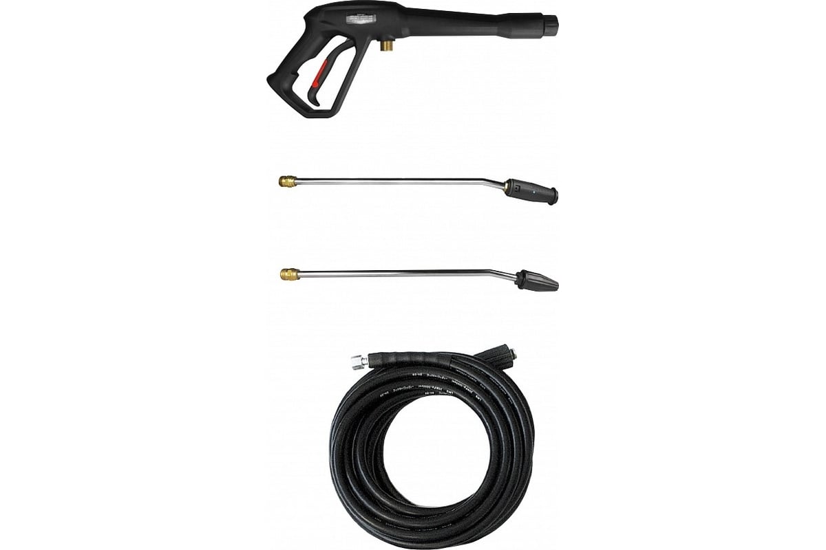 Принадлежности присоединяются к пистолету через резьбовую муфту М22. Минимойка оборудована встроенным баком для моющего средства и автоматической дозирующей системой. Вес устройства чуть меньше 24 кг.