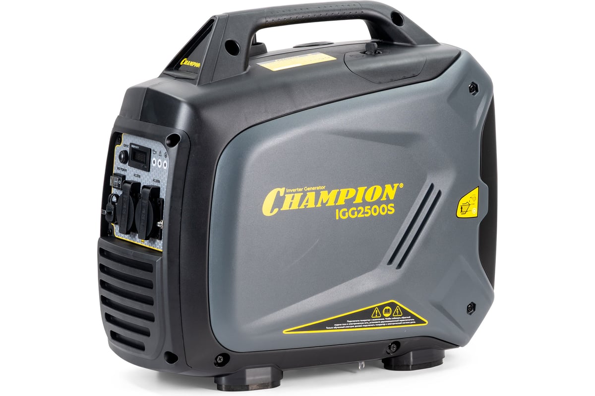 Инверторный генератор CHAMPION IGG2500S — это компактный бензиновый генератор в шумозащитном закрытом корпусе, рассчитанный на питание чувствительной электроники и бытовой техники мощностью до 2,5 кВт (максимум 2,8 кВт). Оснащён четырёхтактным одноцилиндровым двигателем 4,9 л.с., топливным баком 4 л, имеет небольшой вес около 19,8 кг, что удобно для переноски и использования на даче, выездах и в качестве резервного источника питания.