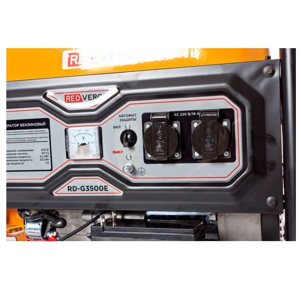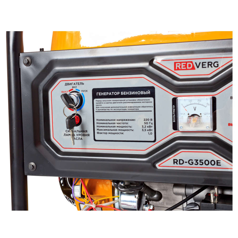 Бензиновый генератор REDVERG RD-G3500E - универсальный и производительный агрегат, при перебоях с электричеством бензогенератор является надёжной альтернативой центральному электроснабжению. Используется для подключения осветительных приборов, отопительного оборудования, электроинструментов, бытовой техники. Оборудование оснащено четырёхтактным двигателем мощностью 8.5 л.с. Имеет электрический и ручной запуск. Особенностью данной модели является