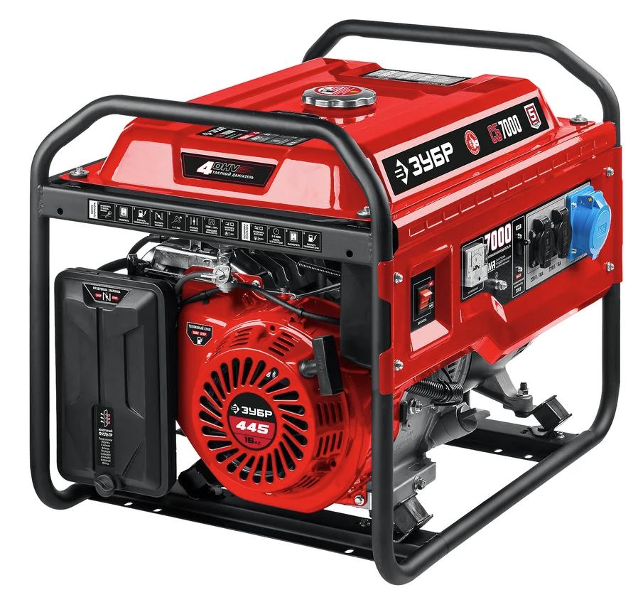 Бензиновый генератор ЗУБР СБ-7000 - мощный генератор, который пригодится не только в загородном доме, но и в мастерской, и на строительной площадке, и вообще везде, где нет стационарного электричества, но нужно иметь работающую технику и инструмент. Оснащен надежным четырехтактным двигателем с раздельными системами питания и смазки. AVR-автоматический регулятор напряжения обеспечивает стабильность характеристик для питания, в том числе наиболее требовательных потребителей. Автоматические предохранители в каждой цепи защищают изделие и потребителей от перегрузок и коротких замыканий. Дополнительная розетка увеличенной мощности для подключения таких потребителей, как нагреватели, калориферы, осветительная техника или несколько потребителей одновременно.