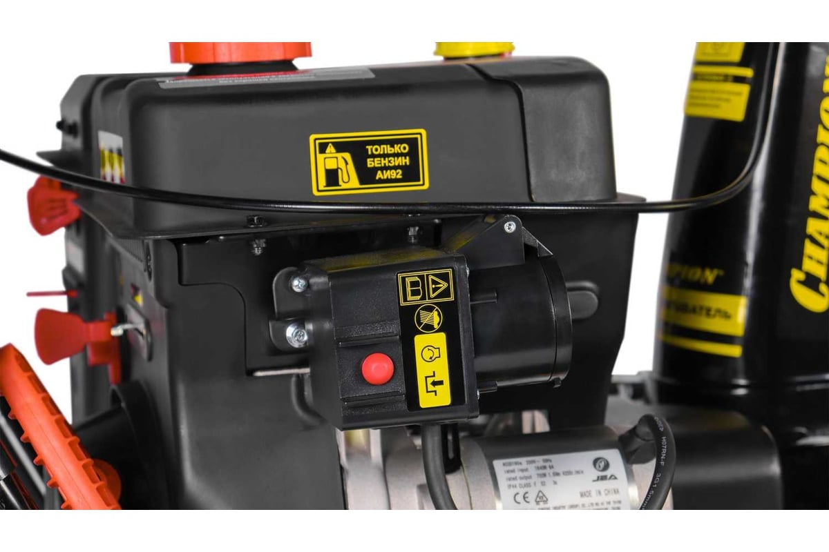 Снегоуборщик оборудован всеми необходимыми для частого использования функциями. Для работы в темное время суток, снегоуборщик оборудован галогеновой фарой, а для упрощения запуска при экстремально низких температурах - электростартером, позволяющим запустить мотор нажатием одной кнопки от сети 220 Вольт.