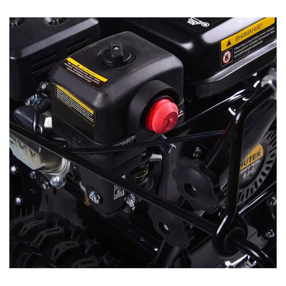 Бензиновый снегоуборщик Huter SGC 8.0 оснащён электростартером от сети 220В, который помогает легко запускать снегоуборщик даже после длительного нахождения на улице. Металлический шнек измельчает слежавшийся и обледенелый снег, а ручка регулировки даёт возможность изменять сторону выброса во время движения. Яркая фара создаёт комфортные условия для работы на плохо освещенных территориях. Колёса оснащены протекторами, что позволяет им не скользить по льду. Модель имеет максимально количество передних скоростей: 6 вперед и 2 назад.