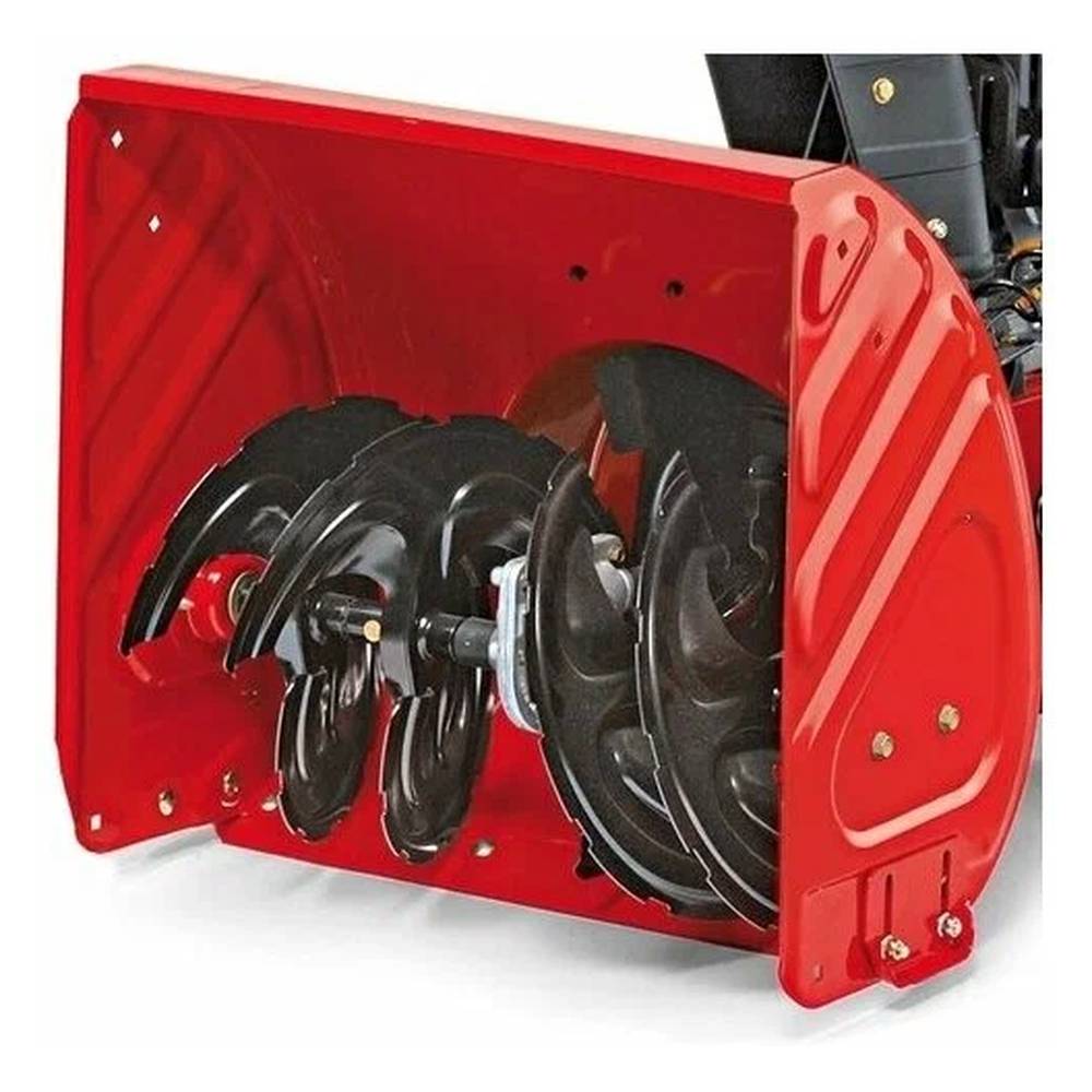 Стальной зубчатый шнек измельчает заледенелый снег, а затем высокоскоростная крыльчатка выбрасывает его через разгрузочный желоб