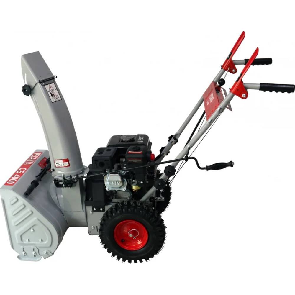 Бензиновый снегоуборщик Ресанта СБ 4000 – это практичная и производительная машина для уборки снега. Отлично подойдет для участка небольшого или среднего размера. Имеет простой принцип работы. Шнек вращается и передает снег в «вентилятор», а тот выкидывает его через рукав на расстояние до 15 м. Благодаря прочному шнеку, использоваться машина может для уборки свежего и слежавшегося снега. Нож или шнек крепится при помощи шплинтов. Они срезаются при случайном попадании камня или другого постороннего предмета. Высокую производительность обеспечивает двигатель мощностью 7 л. с. Верхнее расположение клапанов позволяет использовать устройство при любых погодных условиях. Объем бака составляет 3 л, поэтому можно убирать снег долгое время без дозаправки.