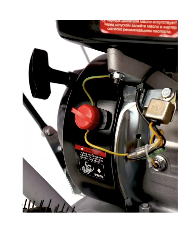 Снегоуборщик данной модели комплектуется надувными колесами с большим протектором, который обеспечивает хорошее сцепление с поверхностью и обеспечивает отличную проходимость. Ограничительные башмаки предупреждают повреждение ковша. Ширина захвата снегоуборщика составляет 56 см. Высота захвата – 42 см. Самоходная снегоуборочная машина легко управляется.