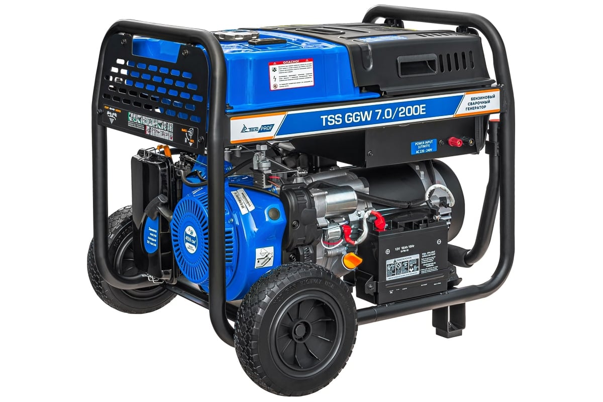 Это профессиональная модель, разработана специально для проведения сварочных работ в тяжёлых условиях эксплуатации. Номинальный сварочный ток составляет 200А при продолжительности включения 100%! Аппарат имеет расширенные сварочные настройки. Номинальный сварочный ток 200 Ампер. Кроме этого, генератор можно использовать как автономный источник электроснабжения. Можно освещать место сварки, подключать электроинструмент - дрель, шлифмашинку, болгарку и т.п. Мощность генератора 7 кВт.