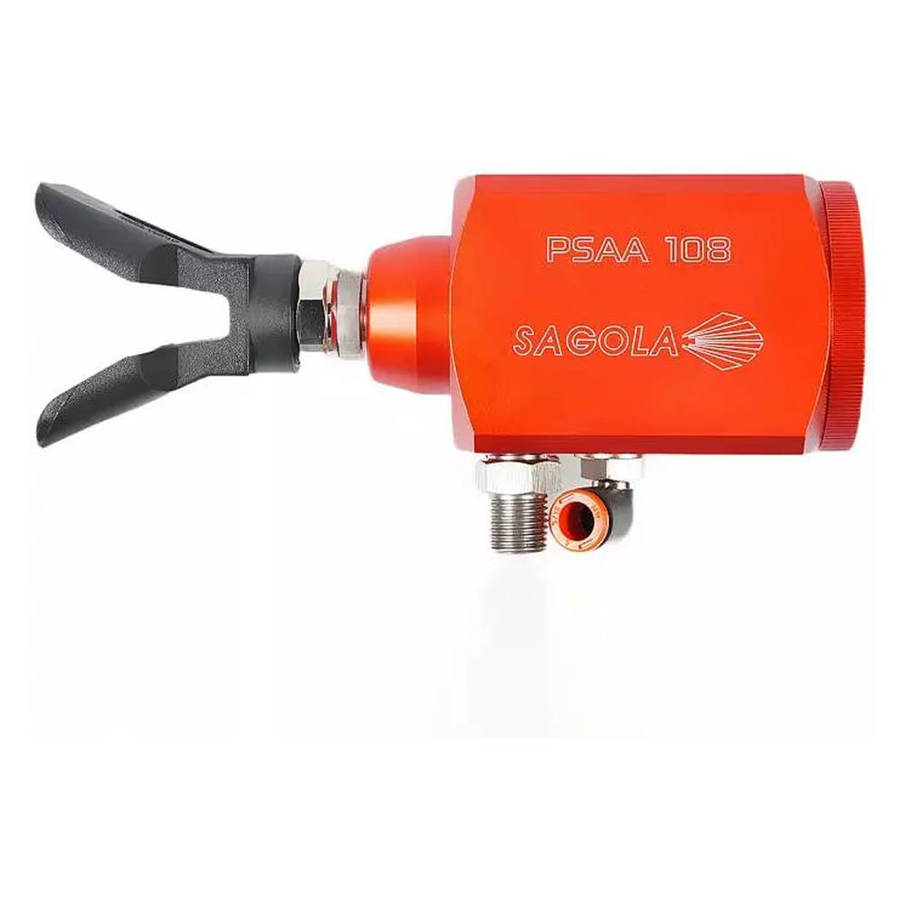 Конструкция краскораспылителя позволяет быстро обслуживать узлы и заменять сопла, а эргономичный дизайн обеспечивает стабильное и равномерное распыление даже при длительных циклах работы. Sagola PSAA 108 совместим с различными промышленными системами подачи краски и поддерживает широкий диапазон вязкости материалов — от тонких лаков до густых эмалей.
