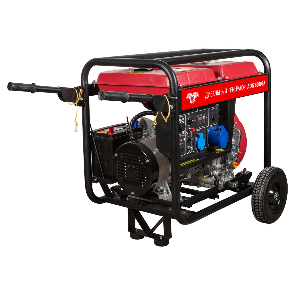 Дизельный генератор AMO ADG 8000EA - автономный источник энергии мощностью 7,5 кВт, при помощи которого можно организовать электропитание сразу нескольких инструментов или создать систему резервного энергоснабжения жилого дома. Ключевые преимущества Надежный двигатель рассчитан на интенсивную длительную работу в непрерывном режиме. Экономный, по сравнению с бензиновыми аналогами схожей мощности, расход топлива и, как следствие, относительно невысокие эксплуатационные расходы. Электростартер для быстрого и удобного запуска в любых условиях. Совместимость с блоками автозапуска (АВР), возможность организовать полноценную автоматическую систему резервного энергоснабжения. Функция зарядки аккумуляторов автомобилей и другой техники через разъем постоянного тока 12 В. Стабильность тока Дизель-генератор AMO ADG 8000EA оснащен альтернатором, в конструкции которого применены обмотки из меди, и регулятором напряжения, стабилизирующим выходной ток в зависимости от нагрузки и условий окружающей среды. Все это положительно сказывается на качестве энергии и позволяет подключать чувствительных потребителей. Безопасность Механизмы защитного отключения обеспечивают сохранность электростанции и подключенной нагрузки при возникновении замыканий и перегрузок. Датчик уровня масла блокирует запуск двигателя на сухую и останавливает работу дизель-генератора AMO ADG 8000EA при недостаточном количестве смазки в картере. Мобильность Транспортировочный комплект из колес и ручек значительно упрощает перемещение оборудования, с этой задачей легко справится один человек. Открытое исполнение Все компоненты электростанции установлены в открытой раме из прочных стальных труб, которая отличается долговечностью и обеспечивает оптимальный температурный режим работы. Информативный дисплей На передней панели дизельного генератора AMO ADG 8000EA расположен небольшой экран, на котором отображаются параметры выходного тока и показатель наработки, необходимый для своевременного техобслуживания.