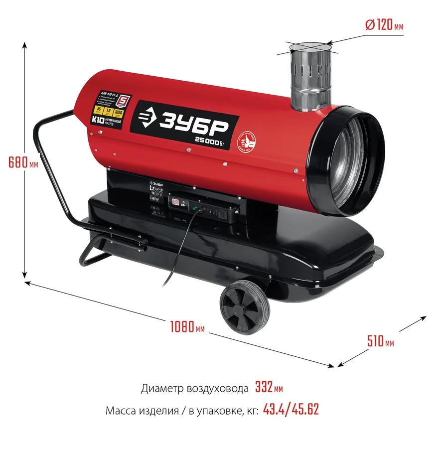Дизельный воздухонагреватель ЗУБР ДПН-К10-25-Д - высокоэффективный дизельный теплогенератор прямого нагрева работающий на дизельном топливе для всех климатических условий.