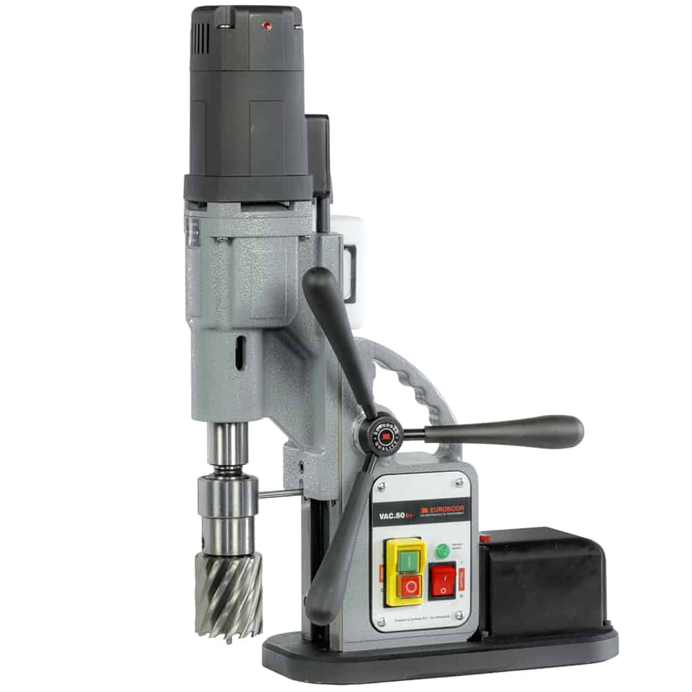 Сверлильный станок Euroboor VAC.50S+ оснащен вакуумной подушкой. Этот станок для сверления специально разработан для горизонтального применения на немагнитных поверхностях. Он прилипает практически ко всем гладким поверхностям (таким как алюминий, нержавеющая сталь, пластик, композиты, латунь, бронза, цинк, свинец или даже медь) благодаря использованию уникальной вакуумной технологии.VAC.50S+ позволит расширить Ваши возможности. Мощный двигатель с редуктором с масляной ванной обеспечивает энергоэффективное, плавное и быстрое сверление с максимальным диаметром сверла 50 мм.
