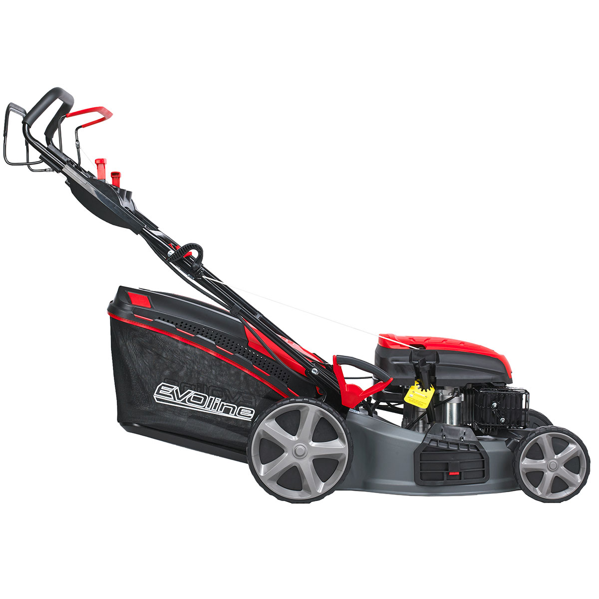 Самоходная бензиновая газонокосилка EVOline LMG 48 CV является одной из 5-ти моделей бензиновых газонокосилок премиум сегмента для коммерческого и домашнего использования. Она оснащена двигателем внутреннего сгорания EVOline мощностью 3,9 л.с. и рабочим объемом 170 куб. см, обеспечивающим высокие обороты вращения лезвия и быстрое перемещение устройства во время эксплуатации на большой площади.