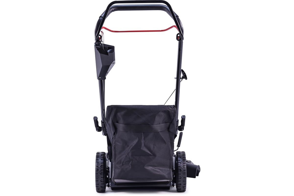 Газонокосилка оснащена передним металлическим бампером, защищающим деку газонокосилки от случайных столкновений с препятствиями, который также может быть использован в качестве рукоятки при переноске косилки.