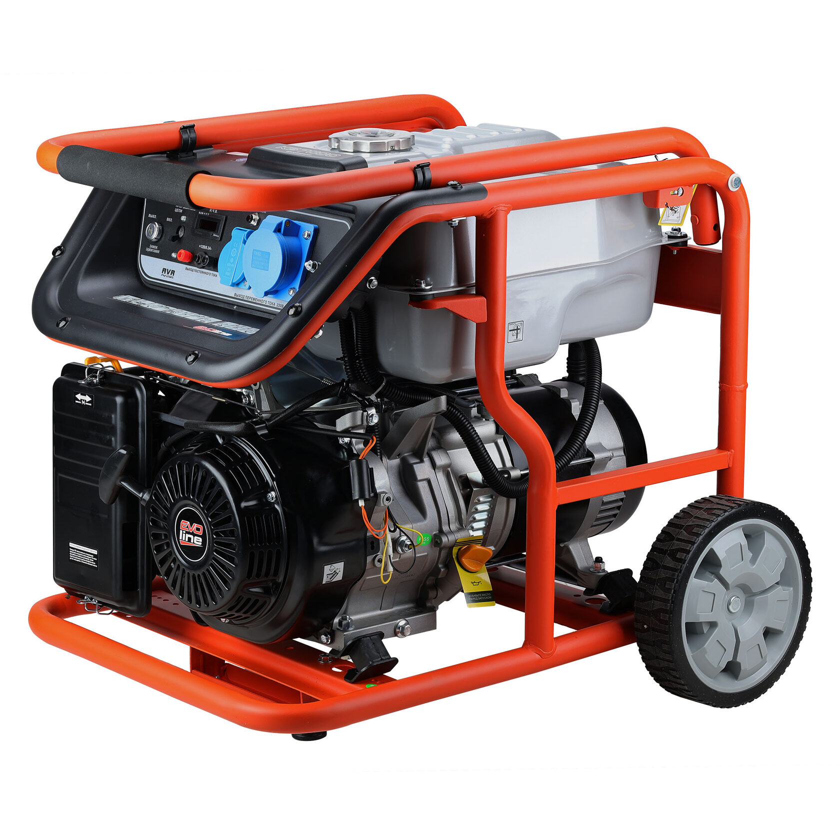 Электрогенератор EVOline KB 7000 – бензиновый однофазный (1 фазный) генератор с максимальной мощностью 6,5 кВА. Силовым агрегатом данной модели является четырехтактный двигатель ZONGSHEN GB 420. Рама выполнена из высококачественной стали, которая служит не только для защиты двигателя, но и для удобной транспортировки электростанции. Объем топливного бака составляет 32 литра, что дает примерно 11 часов непрерывной работы в зависимости от нагрузки. Уровень шума при работе генератора составляет 76,5 дБ. Данная модель идеально подходит как для дома, так и для малого или среднего бизнеса. Оснащена транспортировочным комплектом с колесами, счетчиком мото-часов, электростартером и 2-мя розетками (одна из которых - силовая, т.е. на 32А), имеет размер (70х53х59 см) и вес (83 кг). Гарантия составляет 2 года.
