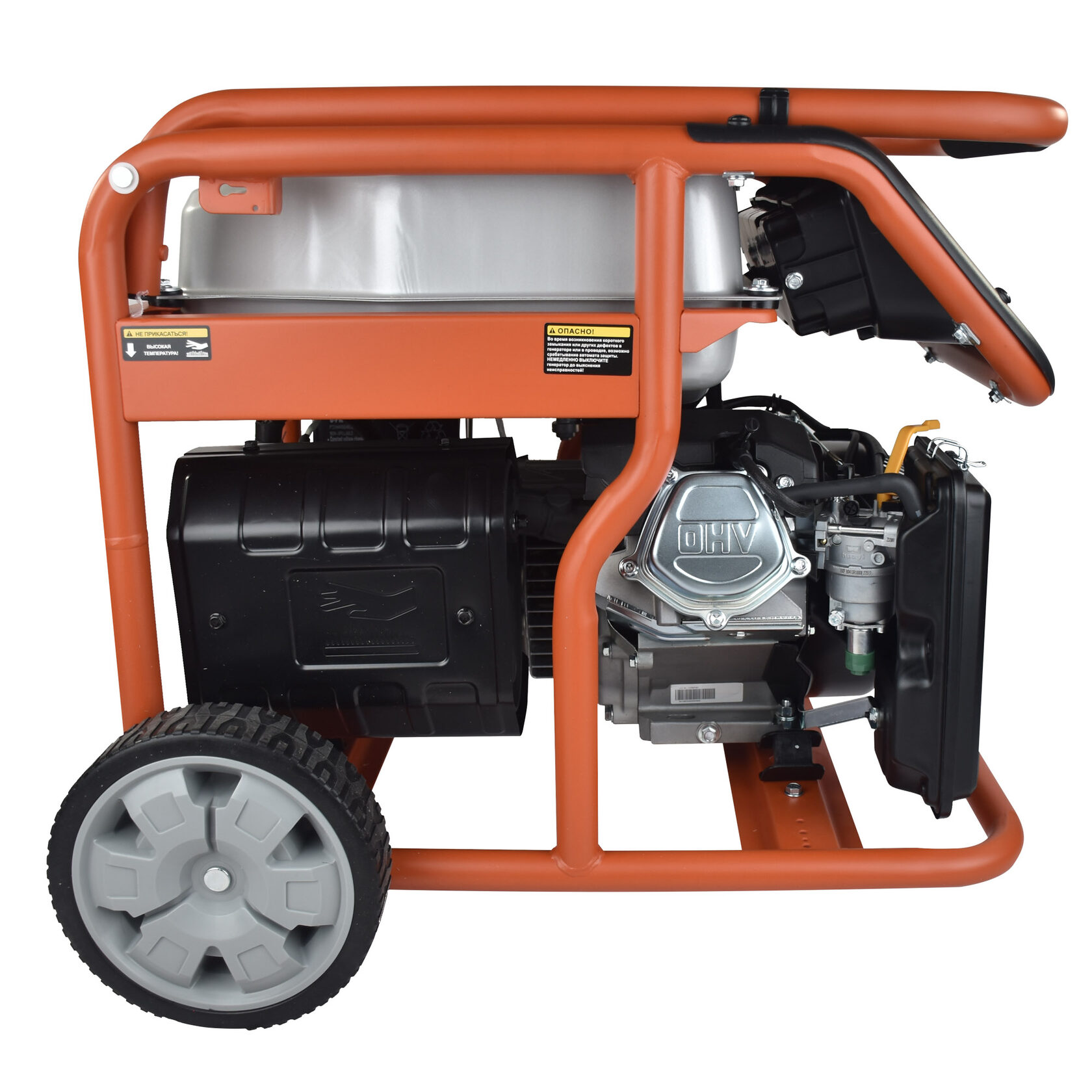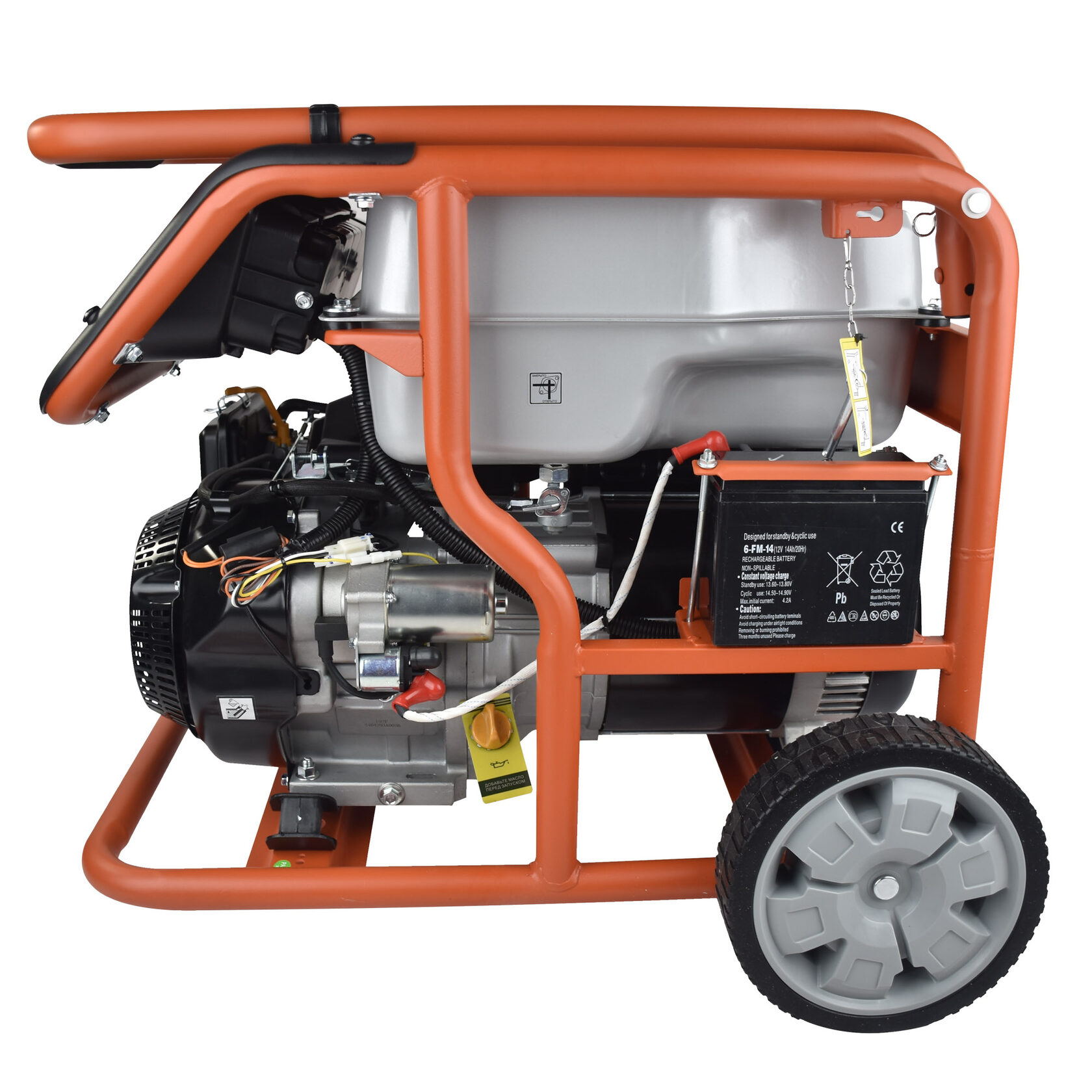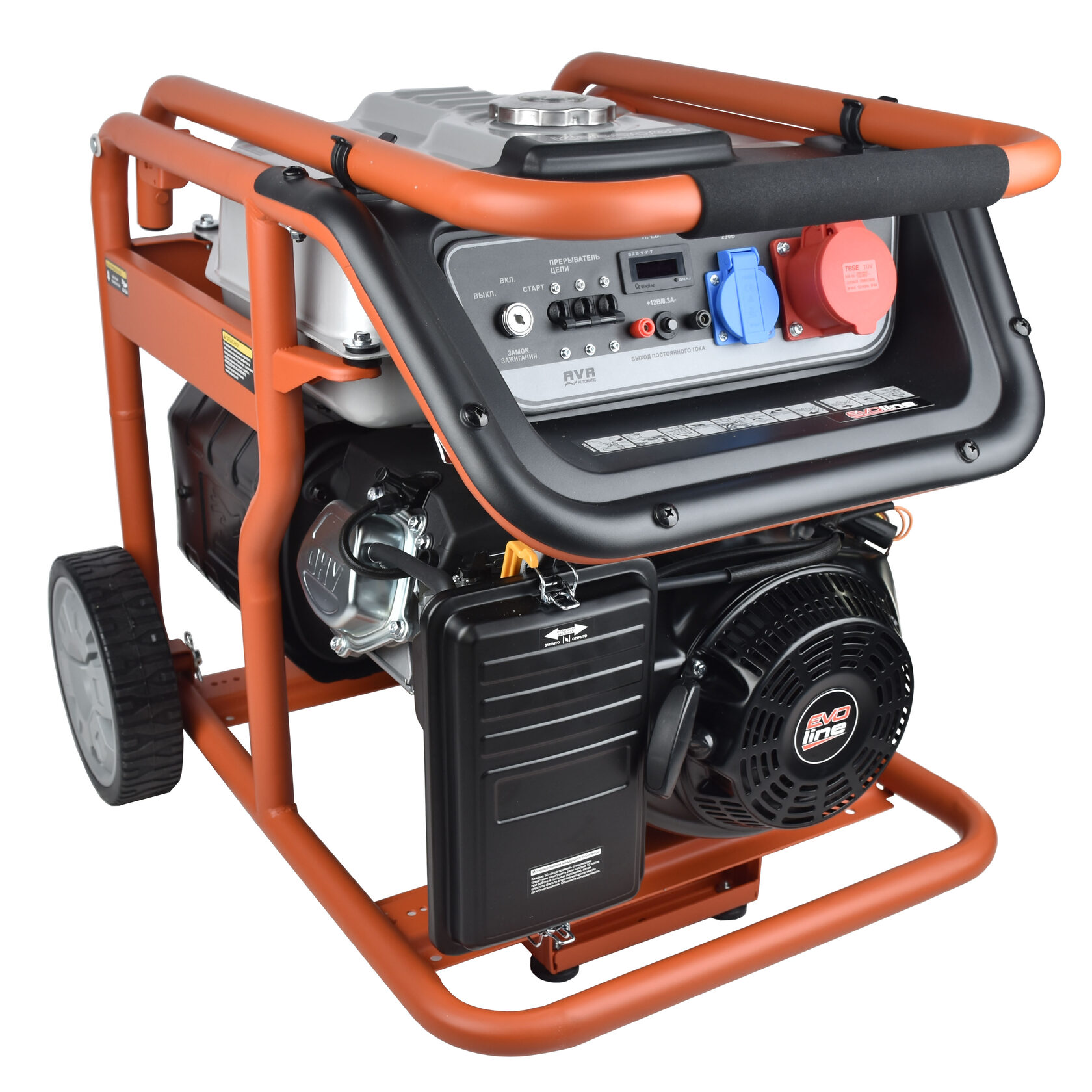 Электрогенератор EVOline KB 9003 E – бензиновый трехфазный (3 фазный) генератор с максимальной мощностью 8,5 кВА. Силовым агрегатом данной модели является четырехтактный двигатель ZONGSHEN GB 460 E. Генератор оснащен электрическим запуском. Рама выполнена из высококачественной стали, которая служит не только для защиты двигателя, но и для удобной транспортировки электростанции. Объем топливного бака составляет 32 литра, что дает примерно 11 часов непрерывной работы в зависимости от нагрузки. Уровень шума при работе генератора составляет 76,5 дБ. Данная модель идеально подходит как для дома, так и для малого или среднего бизнеса. Оснащена транспортировочным комплектом с колесами, счетчиком мото-часов, электростартером и 2-мя розетками, имеет размер (700х530х590 мм) и вес (100 кг). Гарантия составляет 2 года.