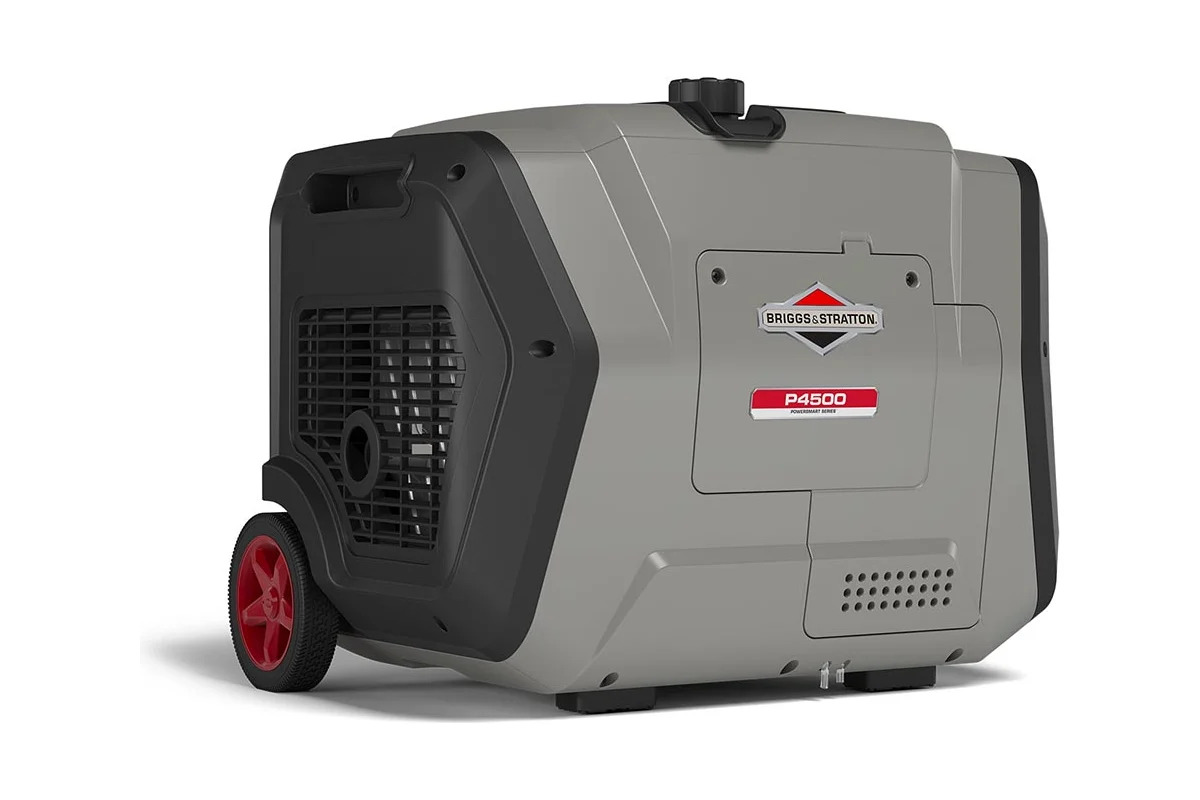 Бензиновый инверторный генератор Briggs&Stratton P 4500 Inverter 30806 отлично подходит для использования в качестве кемпингового. Агрегат обеспечивает безопасное питание чувствительной техники (смартфоны, телевизоры, игровые приставки и прочее). Генератор способен обеспечивать оборудование энергией 16 часов подряд (при нагрузке 25 %). Он вырабатывает 4500 Вт пусковой мощности и 3700 Вт рабочей мощности. В генераторе P4500 имеется 2 бытовые розетки на 230 В, одно гнездо для зарядки на 12 В постоянного тока и два USB-порта на 5 В. Высокая мобильность обеспечивается наличием телескопической рукоятки и колес.
