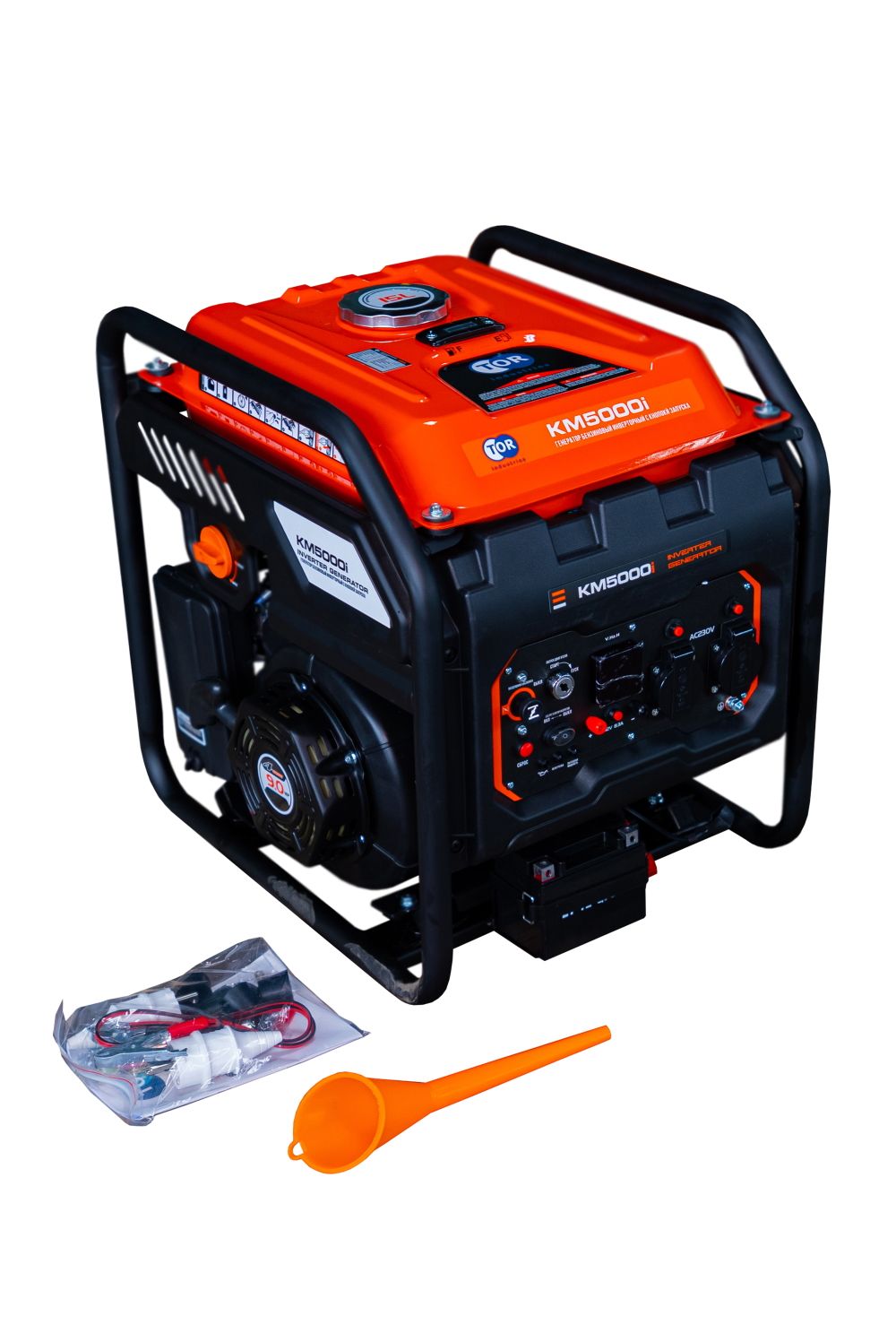 Инверторный бензиновый генератор рассчитан на питание оборудования суммарной мощностью 5 кВт. Оснащен электрическим стартером и топливным баком 25 л. Генератор подойдет для питания всех видов техники, а особенно приборов, чувствительных к качеству тока, таких как видео и компьютерная техника, насосное, лабораторное и медицинское оборудование. Экономичность. Инвертор способен регулировать работу двигателя в зависимости от потребляемой мощности, что снижает расход топлива Высокое качество и стабильность тока. Подходит для питания чувствительной техники Медный альтернатор увеличивает ресурс двигателя Низкий уровень шума Низкий уровень вибрации благодаря демпферным проставкам Легкое обслуживание и доступ к основным узлам Прочная стальная рама Ручной и электрический запуск