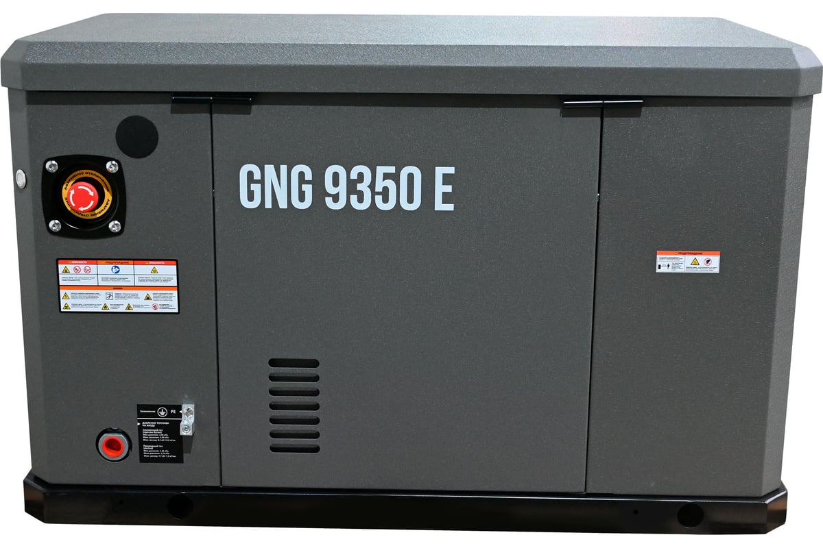 Благодаря алюминиевому шумозащитному кожуху, GNG 9350 E можно использовать на улице. Электронная система управления с многоязычным цифровым дисплеем упрощает работу с генератором, а светодиодная индикация напоминает о необходимости технического обслуживания.