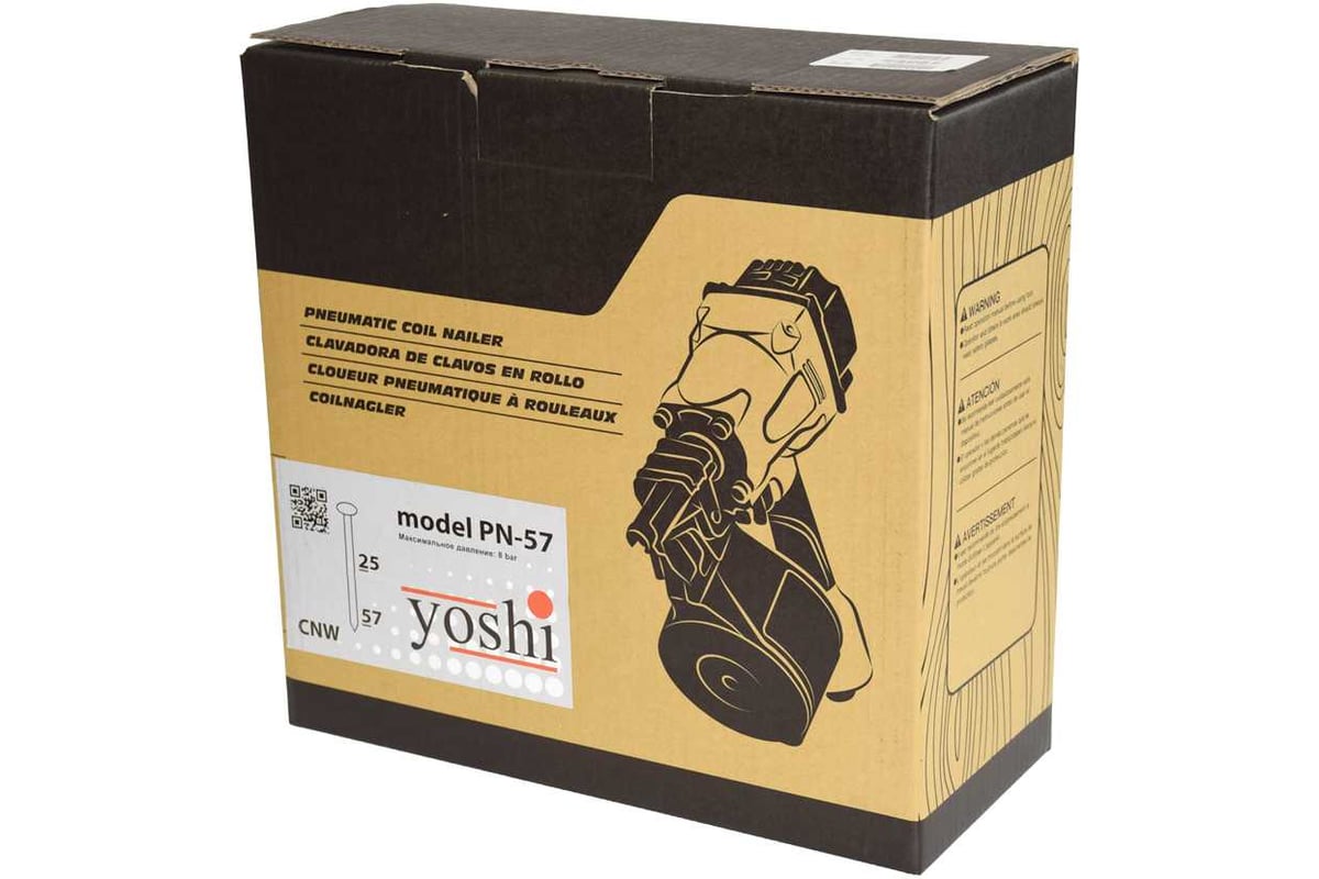 Yoshi PN-57 — профессиональный гвоздезабивной пистолет, разработанный для интенсивной работы в производстве тары и строительстве. Благодаря весу всего 2,5 кг и эргономичной прорезиненной рукоятке, инструмент отлично сбалансирован и комфортен в использовании.