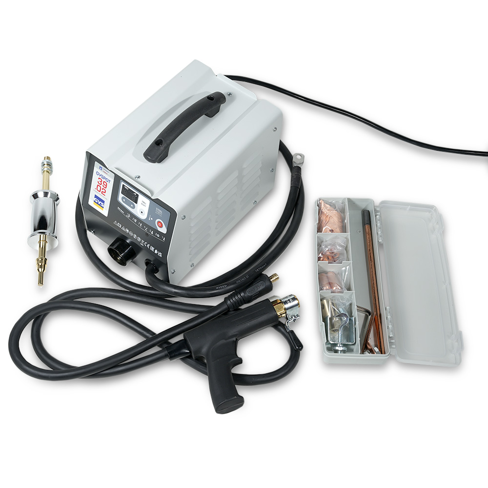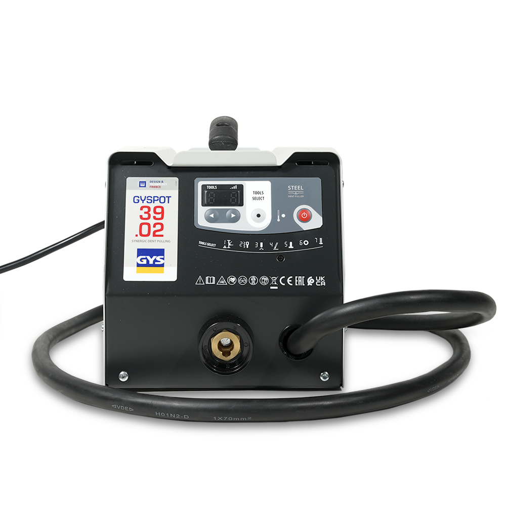 GYSPOT 39.02 – аппарат для правки и вытяжки стали 230 В мощностью 3800А. Прост и удобен в использовании за счет пистолета с автоматическим разрядом и удобной панелью управления Spotter Box (арт. 053915).