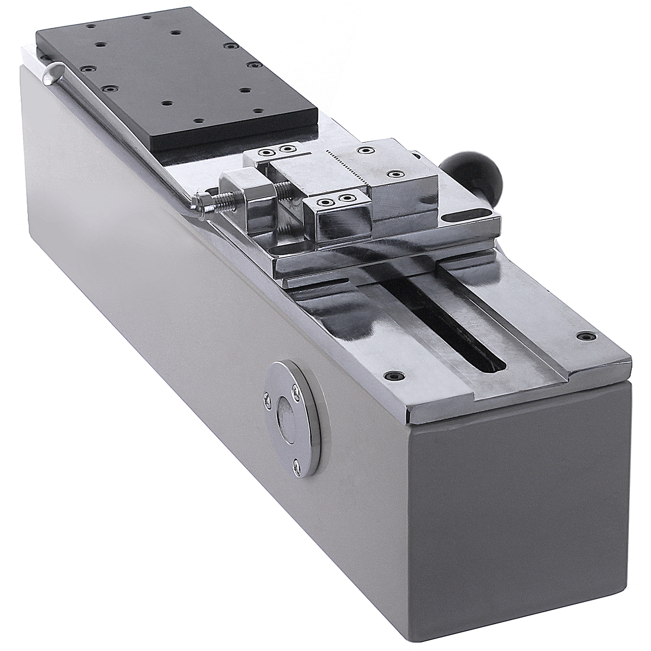 МЕГЕОН 03000F - это простой и удобный горизонтальный испытательный стенд растяжения-сжатия с рычажным механизмом подачи суппорта. Механизм перемещения суппорта имеет простую и надёжную конструкцию, состоящую из термообработанной зубчатой рейки и шестерни. Основные узлы конструкции имеют антикоррозионное покрытие, что в свою очередь увеличивает срок службы всего изделия. На трущиеся поверхности нанесены смазочные материалы. В комплекте имеется удерживающее устройство для устновки образца и ДВУ-001 для динамометра. Удерживающее устройства также имеет антикоррозионное покрытие. В прощадке устройства предусмотрены отверстия в форме паза для правильной установки. Ручной испытательный стенд МЕГЕОН 03000F совместим с динамометрами, как цифровой серии МЕГЕОН 03ХХХ, 53ХХХ, а также с аналоговыми динамометрами МЕГЕОН 04ХХХ.