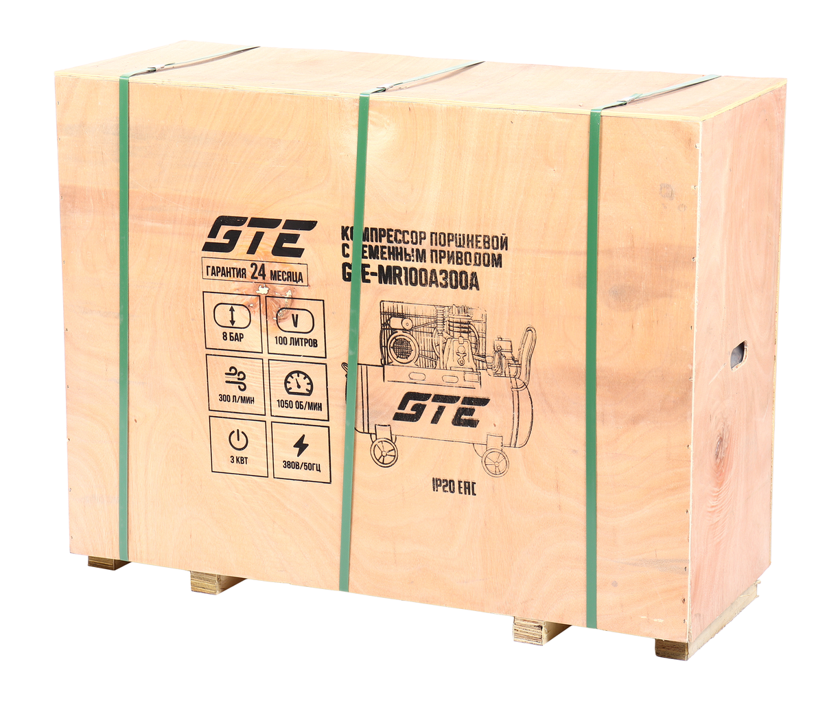Поршневой компрессор GTE‑MR100A300A с ременным приводом — надёжное решение для мастерских и небольших производств. Модель работает от сети 380 В, обеспечивает производительность 300 л/мин при давлении до 8 бар. Ресивер объёмом 100 л позволяет поддерживать стабильное давление воздуха и снижает частоту включений двигателя, продлевая его ресурс.