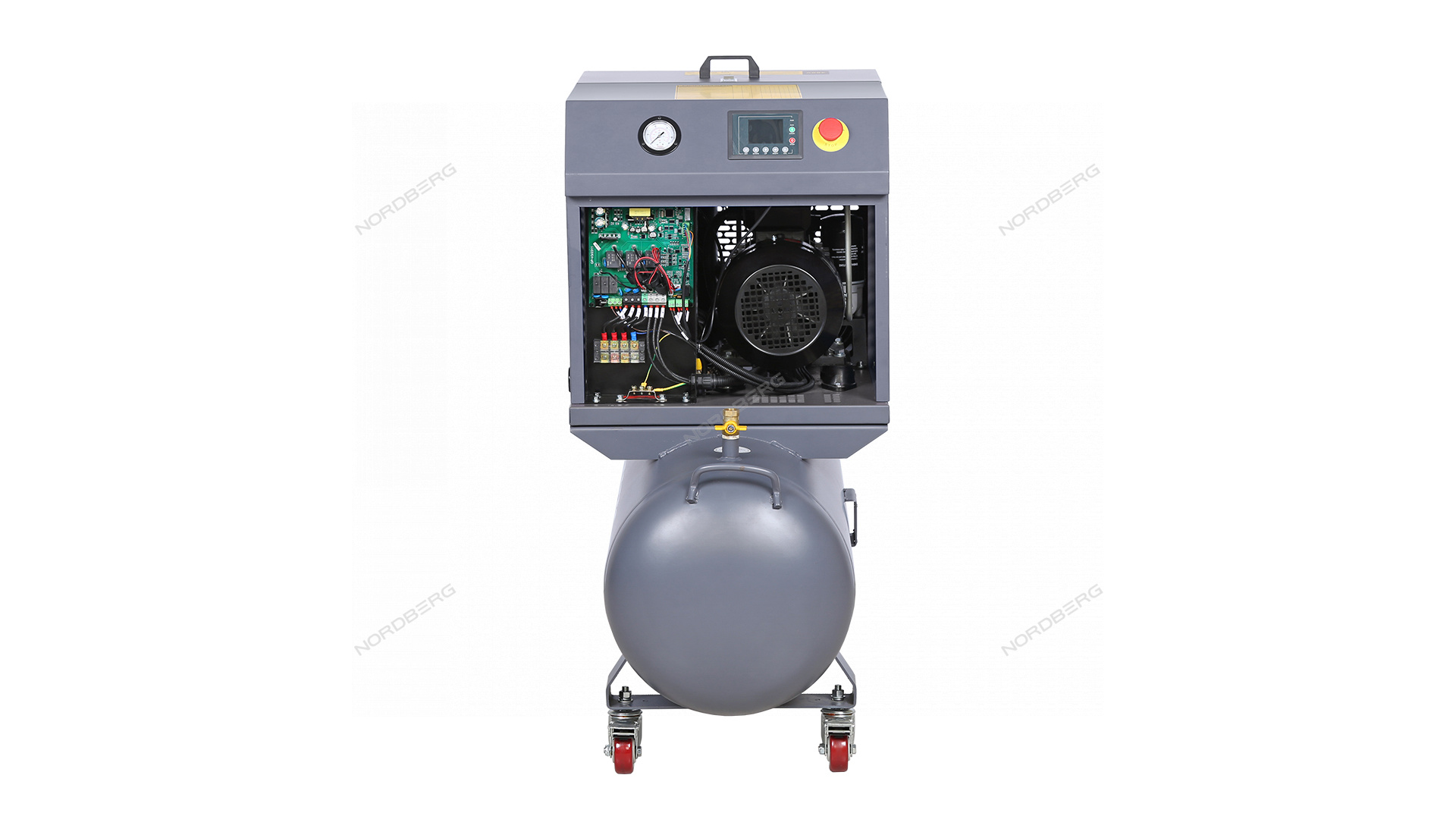 Компрессор оснащён колёсами, что упрощает его перемещение в рабочем пространстве.