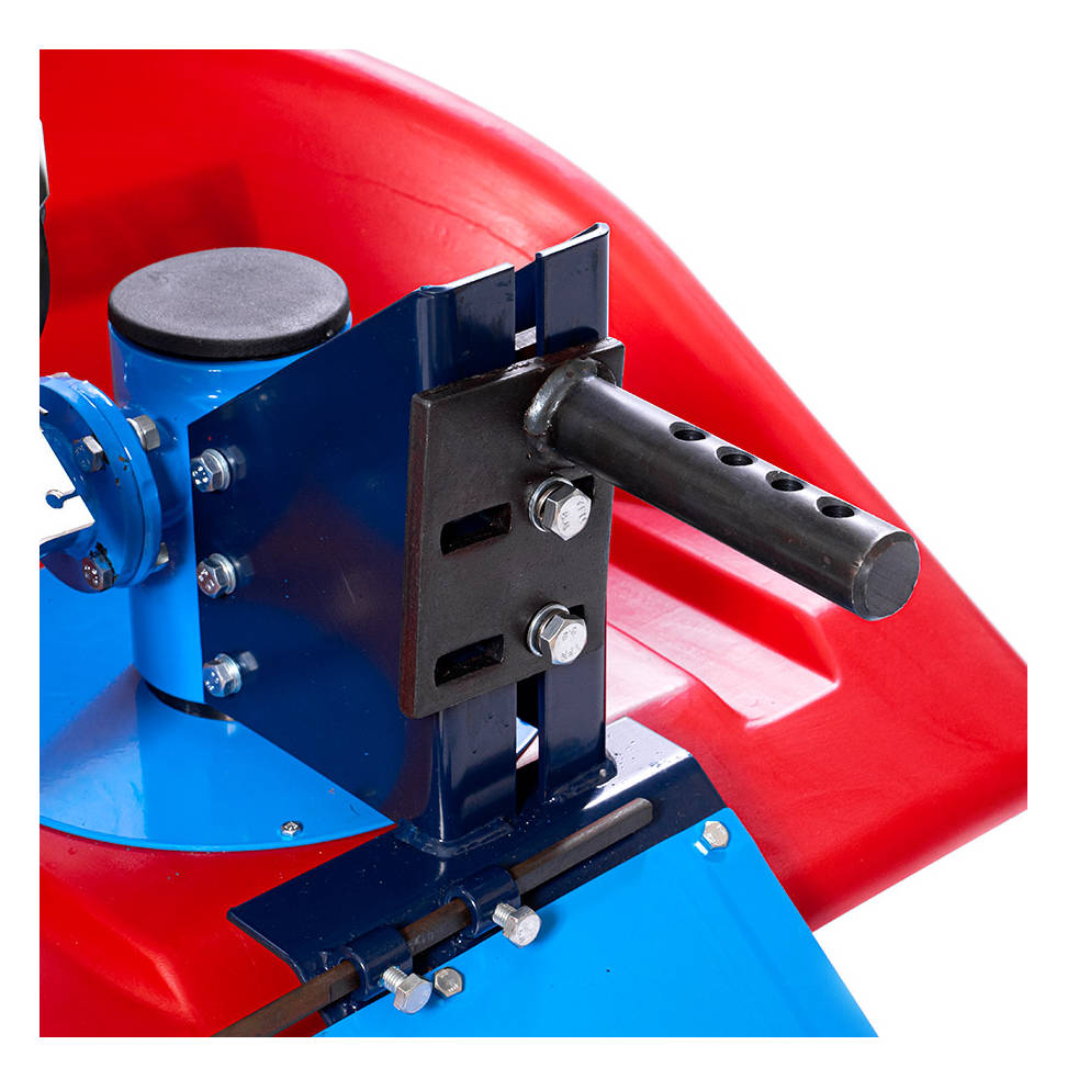 Рабочий орган косилки состоит из одного большого диска и трех сменных ножей. Привод агрегата осуществляется от вала отбора мощности двигателя мототехники через клиноременную передачу. Управление приводом производится дистанционно вручную посредством перемещения рычага, устанавливаемого на руле мотоблока. Порядок установки косилки на технику подробно описан в Руководстве по эксплуатации изделия.