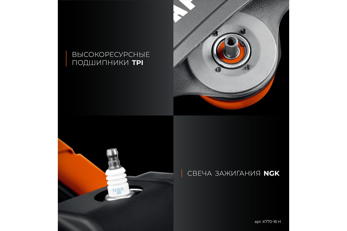 Бензорез KRAFTOOL K770-16 H предназначен для выполнения резов в литом бетоне, камне, кирпиче, металлических конструкциях, стенах, асфальте и бордюрах. Универсальный бензорез оснащен одной из самых результативных центробежных систем очистки воздуха нового поколения, которая обеспечивает работу инструмента без замены фильтра в течение до одного года, а также встроенной автоматической системой компенсации загрязнения фильтра и высокоэффективной системой подавления вибраций, оснащается двигателем, который уменьшает выбросы на 50% и расход топлива максимум на 25%.