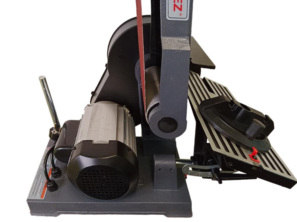 Узел ленточного шлифования является поворотным. Абразивы стандартные: лента: 1219 x 152 мм, диск: диаметр 228 мм.