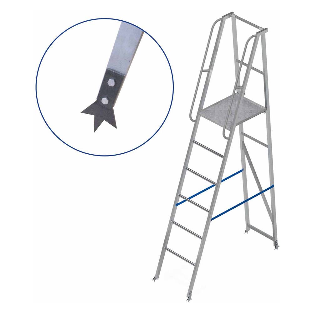 Лестница-платформа фиксированной высоты алюминиевая MEGAL ЛПФВА Н=1.2-1 с шипами предназначена для проведения монтажных и строительных работ. Изготовлена из алюминия, который отличается прочностью, небольшим весом и устойчивостью к воздействию коррозии. Шипы в основании позволяют использовать лестницу на снегу или грунте. Складная конструкция обеспечивает компактное хранение и транспортировку.