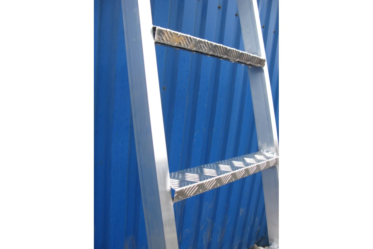 Ступени шириной 45 см и глубиной 7.2 см, выполненные из рифленого листа "квинтет", обеспечивают безопасный и удобный подъем и спуск.