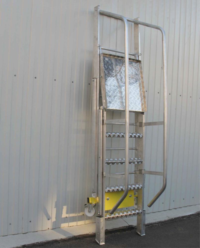 Лестница с платформой компактная MEGAL ЛСПК-1,65 (0,82) предназначена для работ в торговых залах, на складах, вдоль стеллажей и других объектов, при проведении ремонтных, монтажных и иных работ на возвышении. Площадка размером 650х600 мм позволяет удобно расположиться рабочему с необходимым инструментом. Трехстороннее ограждение площадки со встроенной защитной планкой в районе колен, ступени с глубиной 80 мм обеспечивают безопасный подъем, спуск и проведение работ. Складная конструкция и транспортировочные колеса обеспечивает простоту перемещения и складирования оборудования в местах проведения работ. Лестница имеет легкий вес за счет использования алюминиевых сплавов.