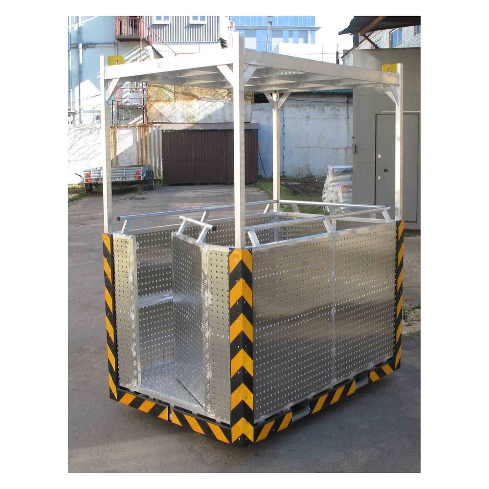 В основание люльки вмонтированы направляющие для перемещения вилочным погрузчиком