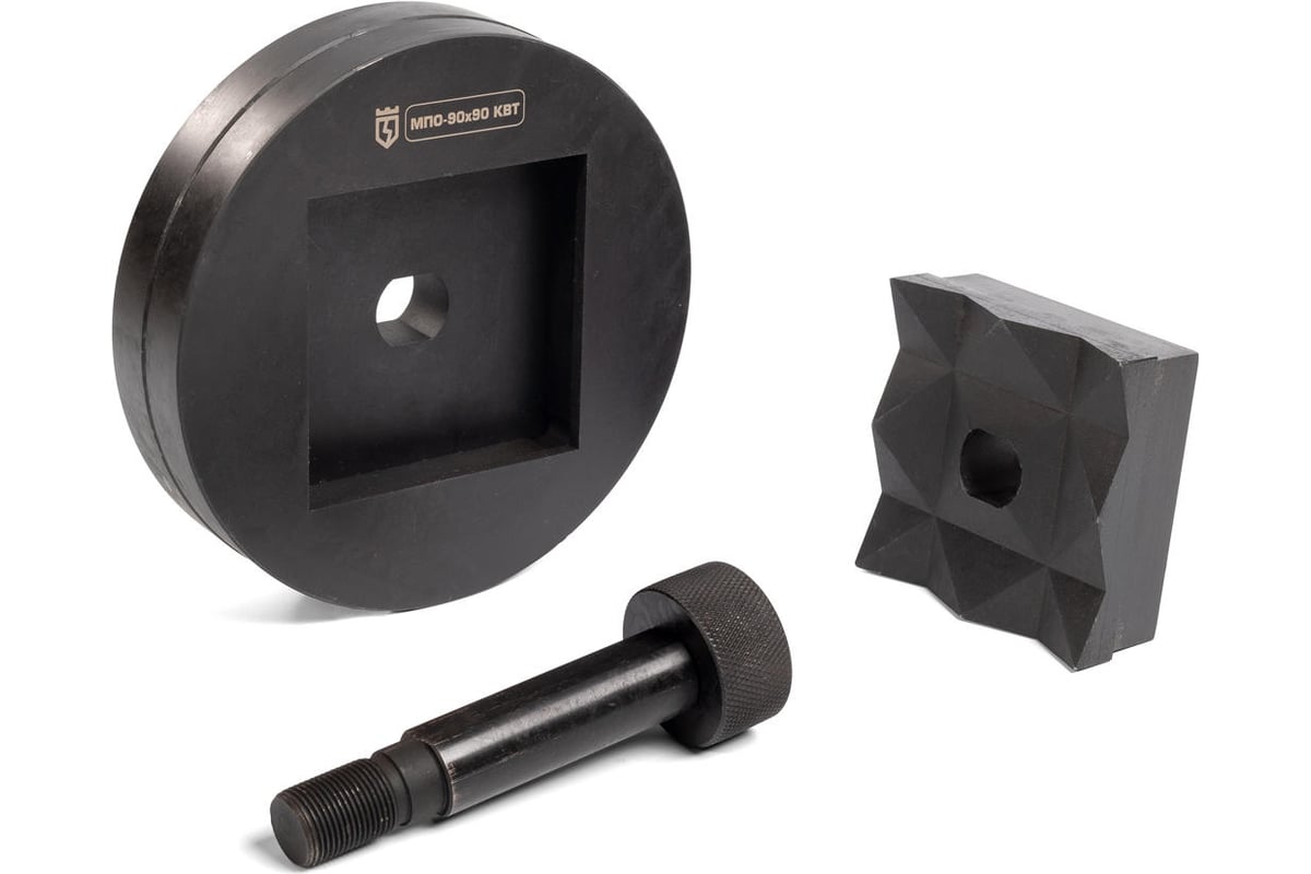 Матрица для пробивки отверстий МПО-90х90 КВТ 85310 - комплект перфоформ: «матрица - пуансон - резьбовая шпилька - прижимная втулка». Пробивка: St 37 - до 3 мм, нержавейка - до 1.5 мм. Совместимость: ППО-60, ППО-115, ПГПО-60, ПГПО-60А,ПГРО-60А, ПГРОп-60А, ПГРОу-60А, ПГАПО-60А.