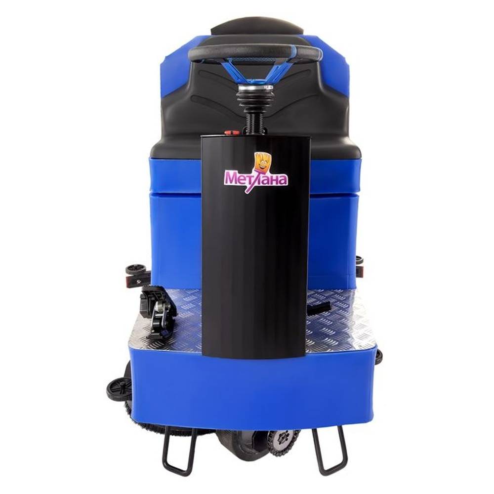 Аккумуляторная самоходная поломоечная машина Метлана M100 с местом оператора, баками 130/140 л., шириной захвата моющих щеток 85см и продолжительностью автономной работы до 4 часов (Продолжительность автономной работы определялась с новыми, полностью заряженными AGM аккумуляторными батареями ёмкостью 240Ah/20HR, путем многократного испытания машины на стенде с полной нагрузкой (с включенными моторами щеток и вакуумным мотором). Спроектирована, создана и серийно выпускается в России. Машина безупречно справляется с задачами по уборке площадей до 20000 квадратных метров, надежна и проста в обслуживании.