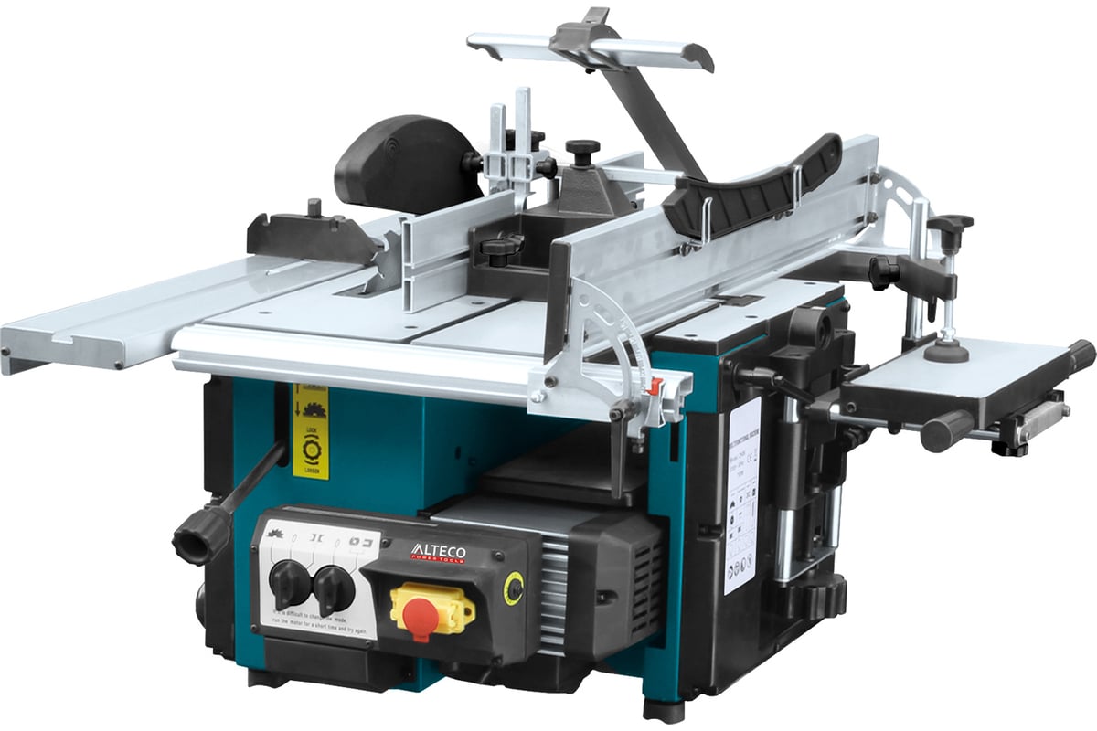 Многофункциональный станок эффективно используется в небольших столярных мастерских. Агрегат сочетает в себе функции 5 станков (сверлильного, фуговального, рейсмусового, распиловочного и фрезерного), но при этом занимает намного меньше места. Столы имеют полированную поверхность.
