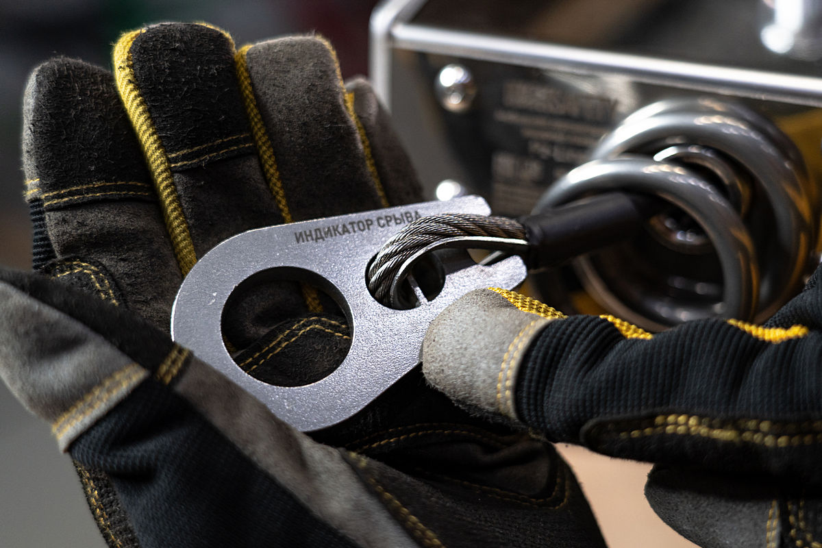 Индикатор срабатывания, расположенный на пластине на конце троса.