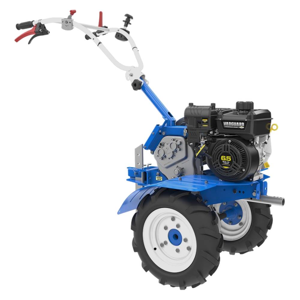 Мотоблок оснащен двигателем Vangard мощностью 6,5 л.с. Неприхотливый мотор легко запускается при температуре до -20 °С. Объем бака для топлива 3,1 л и расход бензина 1,69 л/час позволяют работать долгое время без перерыва на дозаправку. Дополнительный набор передач обеспечивают движение на 6 скоростях вперед и 2 назад, позволяя подстроиться под особенности своего участка.