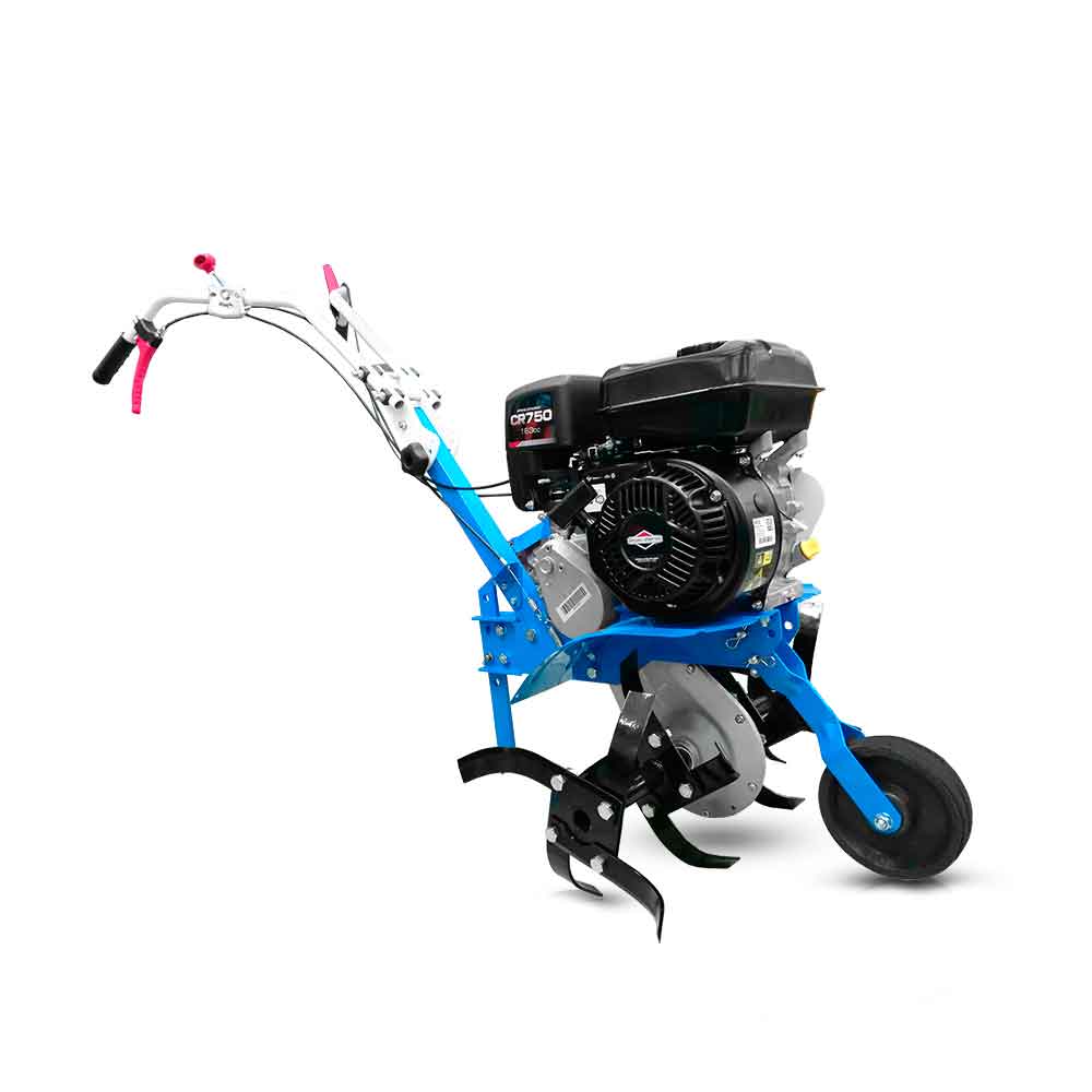 Мотокультиватор Нева МК100Р (CR750) – универсальный агрегат, с соответствующей оснасткой выполняет широкий комплекс агротехнических работ: вспашку, культивацию, окучивание, нарезку борозд, прополку, выкапывание корнеплодов и другие работы. Обладает хорошей маневренностью и высоким тяговым усилием. Бензиновый четырёхтактный двигатель отличается долгим сроком службы и высокой производительностью. Редуктор в алюминиевом корпусе. Руль можно регулировать по высоте для удобства оператора. Переднее опорное колесо для устойчивости и передвижения техники. Культивация осуществляется 4 – 6 фрезами. Мощность агрегата 3700 Вт или 5 л.с. Глубина вспашки 160 мм, ширина 920 мм. Максимальный диаметр фрезы 320 мм. Ёмкость масляного бака 0,6 л, топливного 3,1 л. Вес агрегата 45,8 кг.