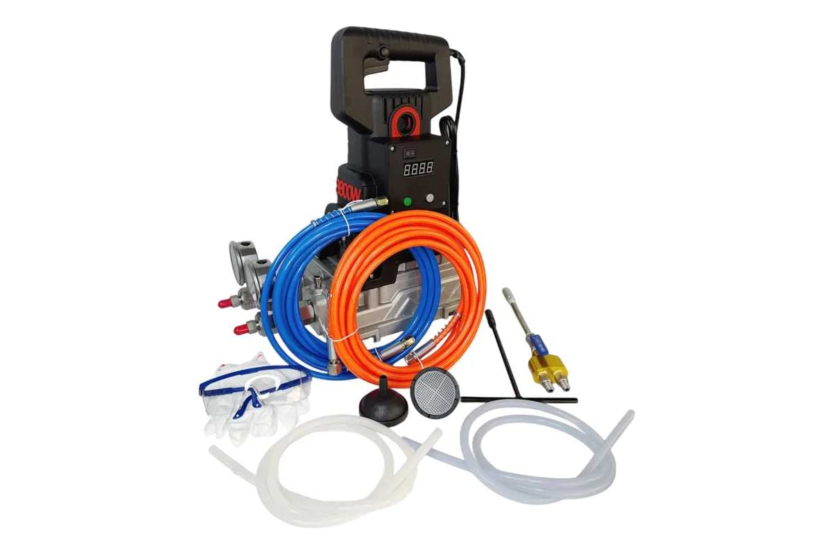 Насос для инъектирования акрилатных гелей двухкомпонентный AvS-03A - представляет собой современное и надежное оборудование, предназначенное для профессиональных строительных и ремонтных работ, связанных с инъекциями высокоэффективных материалов. Этот насос работает от электросети с напряжением 220-240 В, что обеспечивает его универсальность и возможность использования в различных условиях.