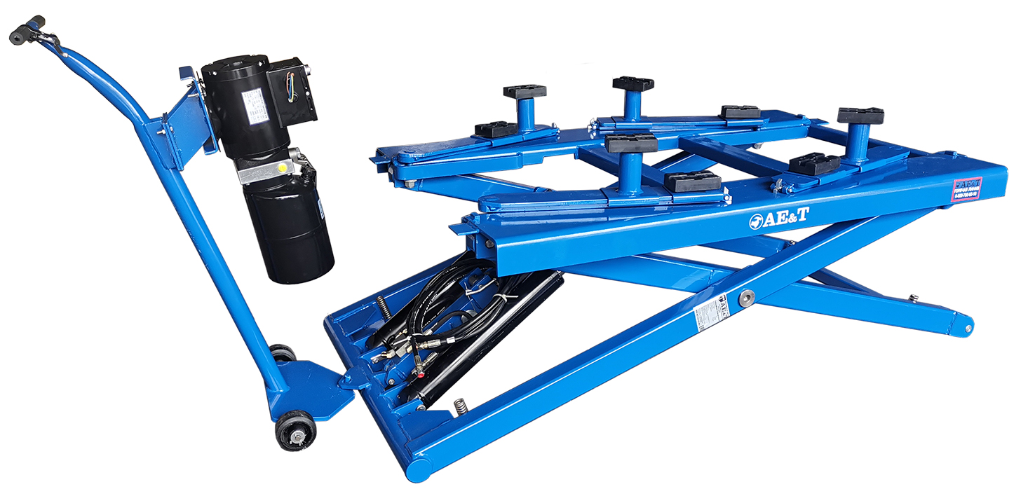 Оборудование легко перемещается при помощи специальной тележки, которая имеет крепление и колеса для зацепления и передвижения подъемника, в том числе и под неисправные автомашины. Независимая силовая станция расположена также на тележке.