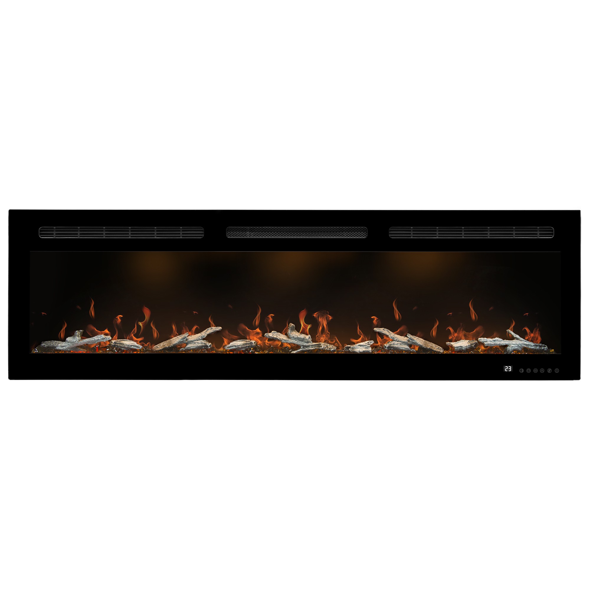 Современный электроочаг с декоративным наполнением из акриловых кристаллов и дров, палитра подсветки которых включает 6 оттенков основного пламени и режим тлеющих дров, 5 уровней настройки скорости пламени.