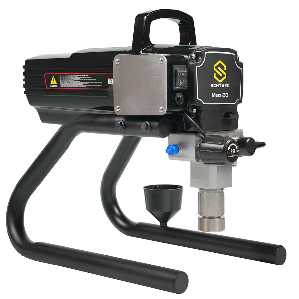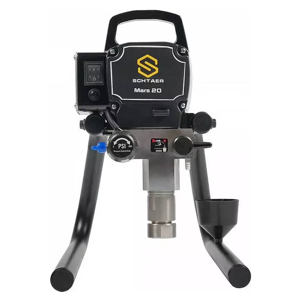 Schtaer Mars 20 предназначен для безвоздушного распыления разных строительных красок с максимальным давлением в 227 бар. Предназначен для нанесения лакокрасочных материалов низкой и средней вязкости на основе растворителя и на водной основе. Подключается к стандартной электрической сети с напряжением 220 вольт. Производительность этого агрегата составляет 2,2 л/мин.