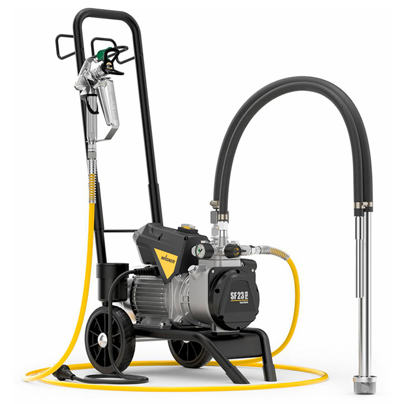 Краскораспылитель Wagner SuperFinish 23 PRO HEA 2399198 используется для нанесения лакокрасочных материалов вязкостью до 20000 мПа. Подходит для работ в мастерских, на строительных участках малых и средних размеров.
