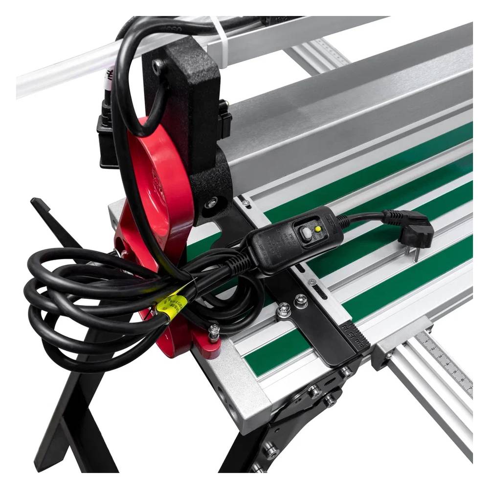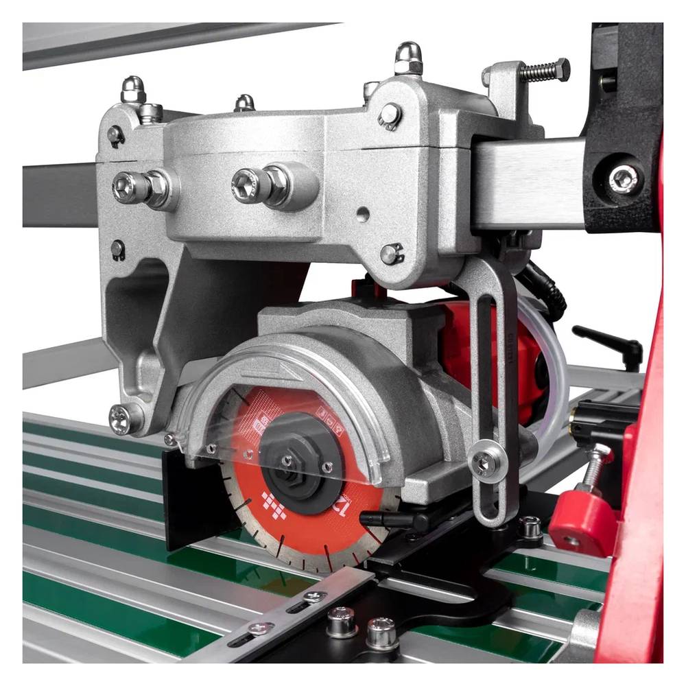 Плиткорез имеет высокое качество сборки, материалов и комплектующих. Рама изготовлена из профилированного алюминия и не коррозирует от попадания воды. Система водяного охлаждения предотвращает перегрев пильного диска, а также способствует работе без пыли. Специальный кожух защищает оператора от вылета мелких частиц во время проведения работ.