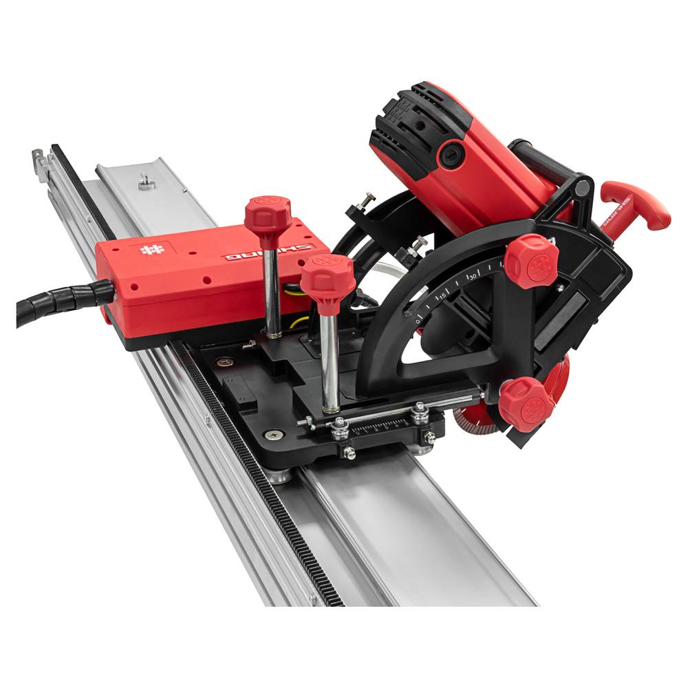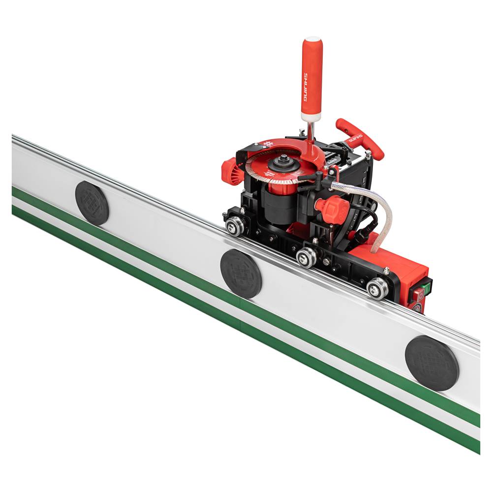 Станок оснащен мощным и высокооборотистым двигателем 2300Вт с возможностью регулировки оборотов (6000-12000 об.мин.) который дает возможность делать две операции за один проход: рез и обработка кромки фасочным диском для того чтобы избавиться даже от микросколов которые остаются при резе и получить качество заводского края без дополнительной необходимости доработки плитки «черепашками». Это единственный станок, который может добиться такого результата за одну операцию при максимальном резе до 3200мм, а время это деньги: быстрее работаем - больше зарабатываем! Также плиткорез позволяет делать закругление торца плитки (снимать радиусную фаску), а также снимать фаску на лицевой части (к примеру, есть возможность из обычной плитки делать плитку для ступенек). Мокрорез осуществляет как прямой рез, так и под углом до 50° с максимальной длиной реза 3200мм.