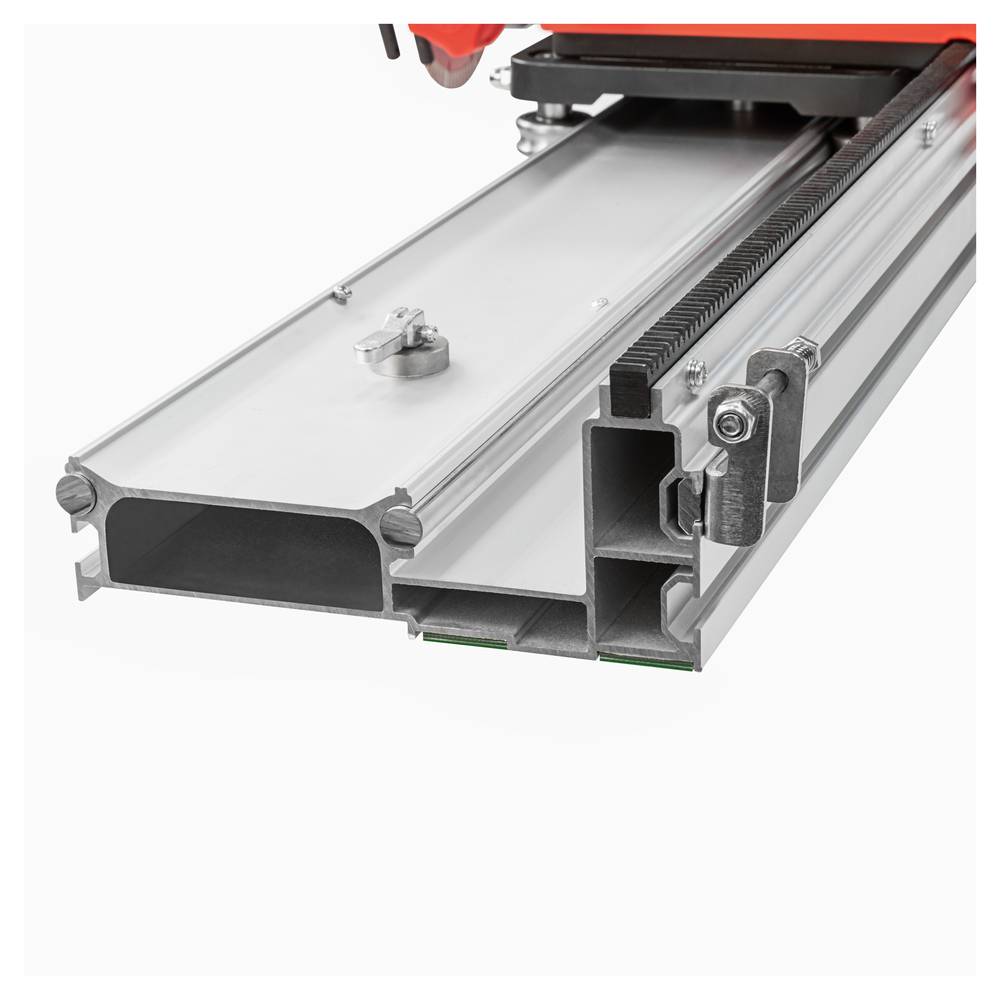Электрическая система резки крупноформатной плитки DLT SLIMTRONIC специально разработана для резки любого типа керамической плитки, натурального и искусственного камня (например, керамогранит, мрамор, кварцевый агломерат) длиной до 320см и толщиной до 30мм. Точную резку гарантирует высокое качество изготовления каретки, алюминиевых направляющих, системы их соединения. Система включает в себя все необходимые элементы для её резки. Это профессиональный электрический плиткорез с автоматической подачей каретки, который способен делать идеальный рез - качество «заводского реза». Что касается DLT SLIMTRONIC – так у него вообще нет конкурентов и аналогов на данный момент.