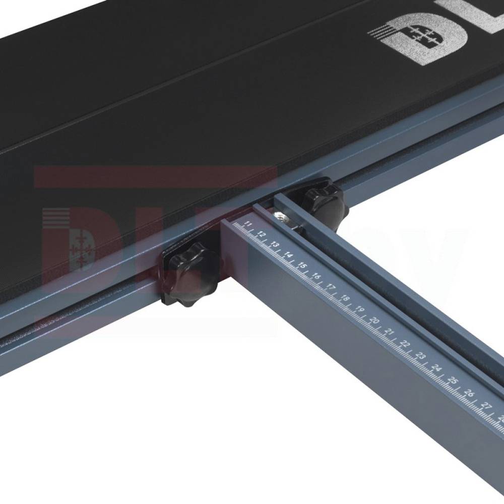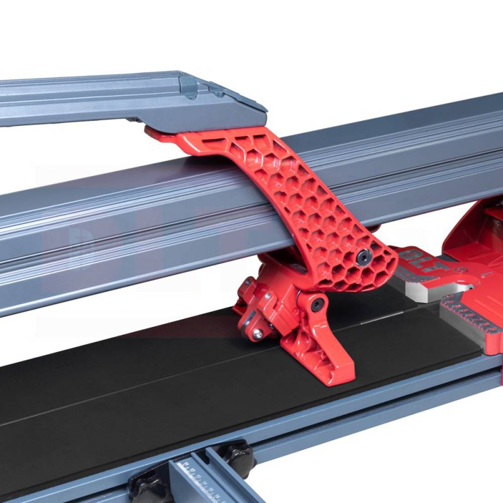 Плиткорез DLT оснащён линейкой с тремя боковыми отцентрованными линейками, которые позволяет выставить плитку без дополнительной разметки, регулируя ровность реза. Линейка оснащена боковым упором для серийной резки и фиксации заготовок под углом 45º.