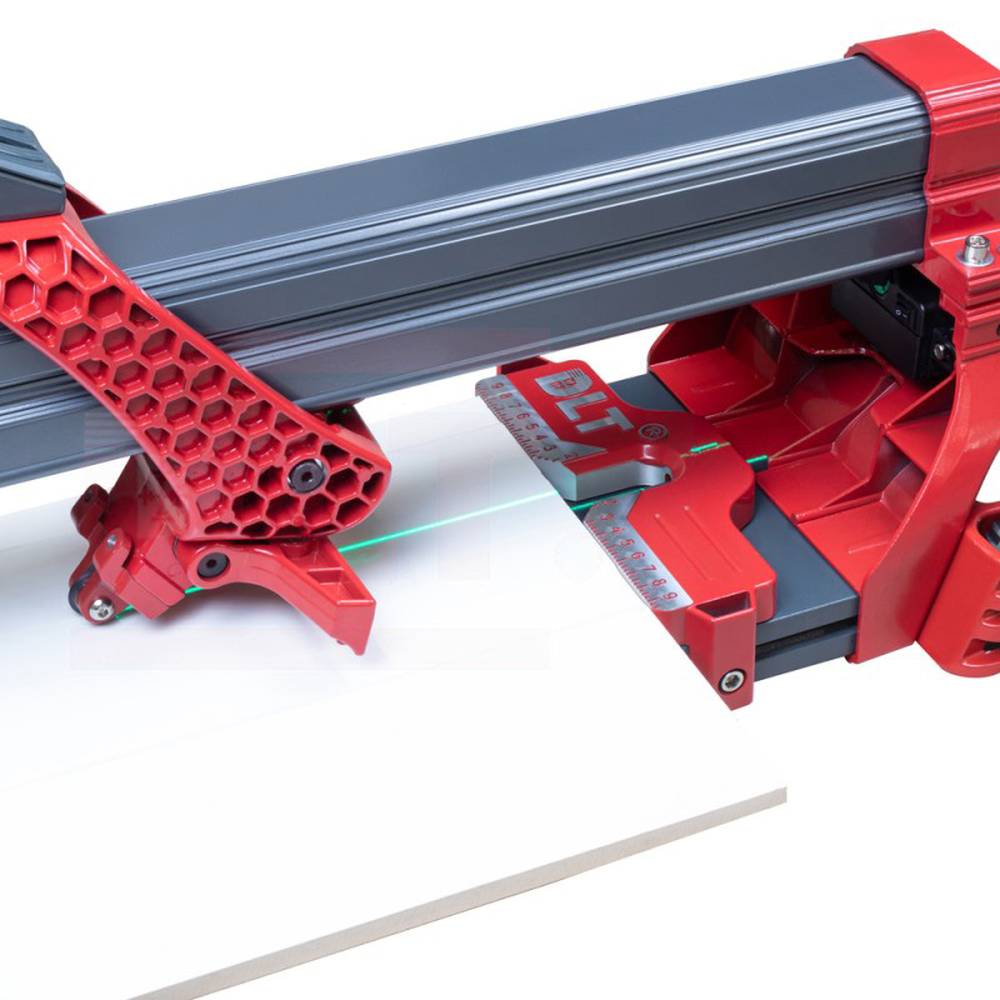Плиткорез DLT оснащён линейкой с тремя боковыми отцентрованными линейками, которые позволяет выставить плитку без дополнительной разметки, регулируя ровность реза. Линейка оснащена боковым упором для серийной резки и фиксации заготовок под углом 45º.